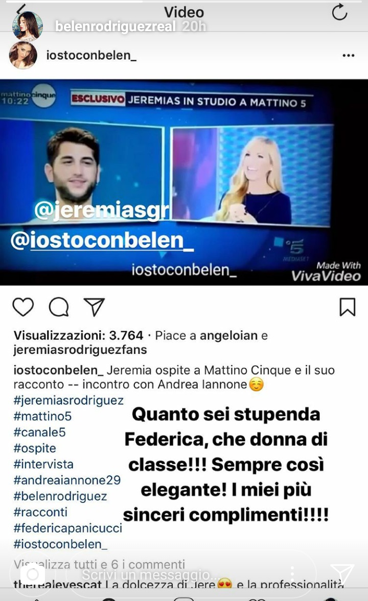 I complimenti di Belen sono un po’ “sospetti”. Forse sono una frecciatina rivolta alla conduttrice Barbara d’Urso, che non è riuscita ad avere in studio a Domenica Live né Jeremia né la sorella Cecilia dopo la loro eliminazione dal Grande Fratello Vip. La conduttrice aveva pronunciato una frase la scorsa domenica che forse potrebbe avere irritato la famiglia di Belen, ovvero: “Il mio è un programma democratico. Chi vuole viene, chi non vuole non viene. Facciamo il 22% anche senza i fratelli Rodriguez”.
