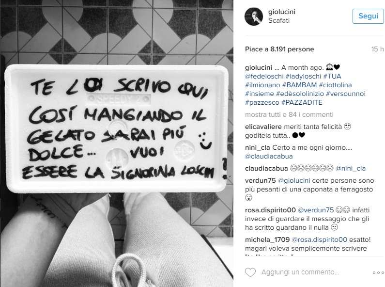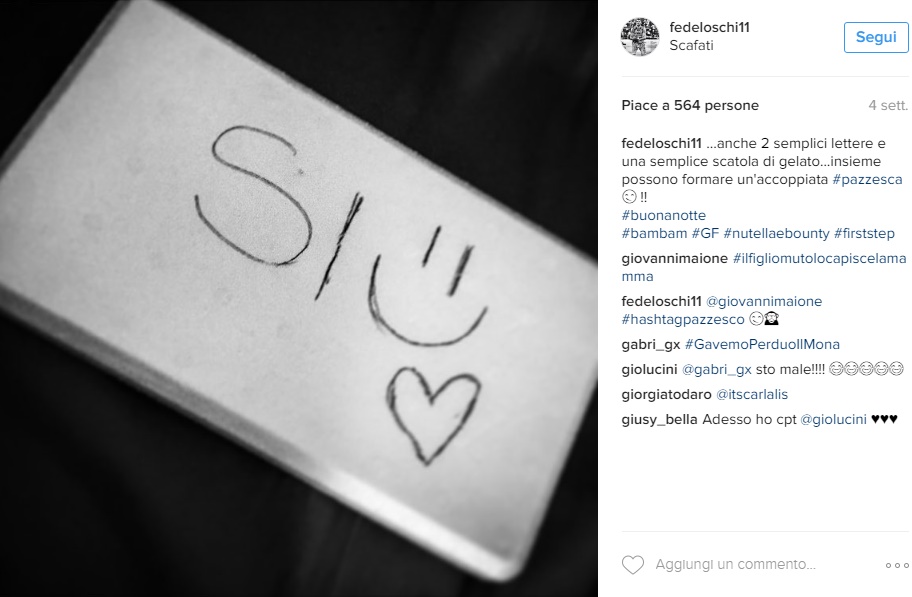“Un mese fa. Federico Loschi sono tua. Ed è solo l’inizio verso un noi pazzesco, sono pazza di te”.