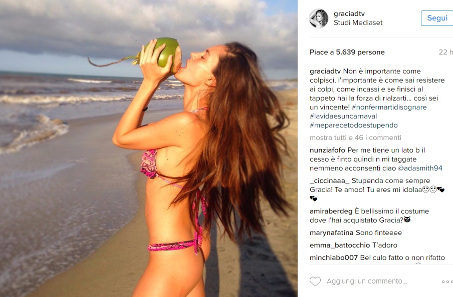 Gracia ha fatto parlare molto di sé durante l’Isola per via del suo lato b, che ha destato discussioni e dibattiti anche di molti chirurghi famosi, come Giacomo Urtis. Daniele Sandri, fidanzato di Gracia, ha sempre smentito che la showgirl fosse ricorsa alla chirurgia estetica, spiegando che la ragazza si sottoporrebbe a duri allenamenti in palestra per mantenere perfetto il suo corpo.