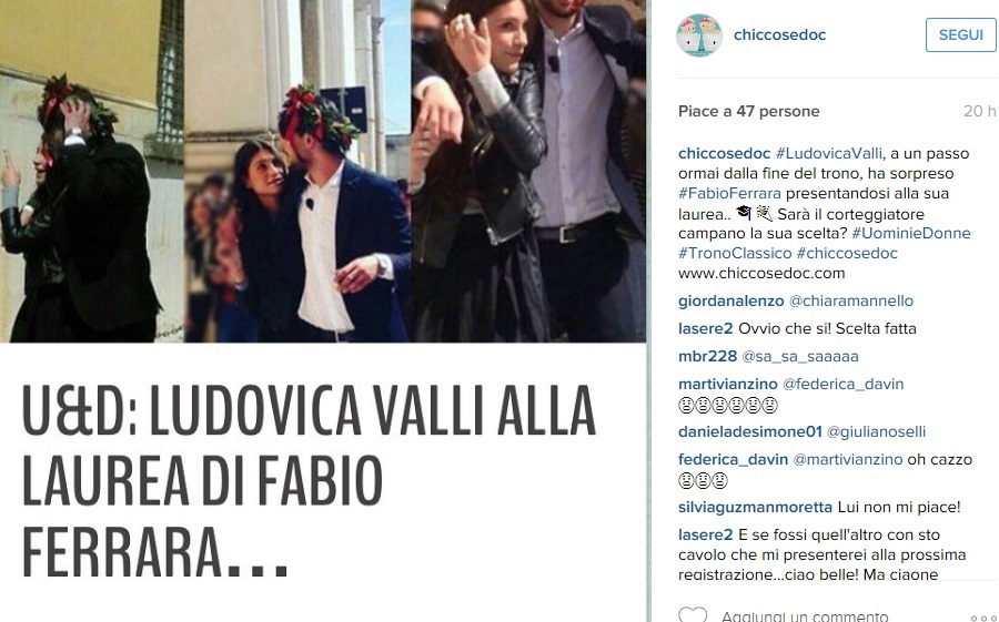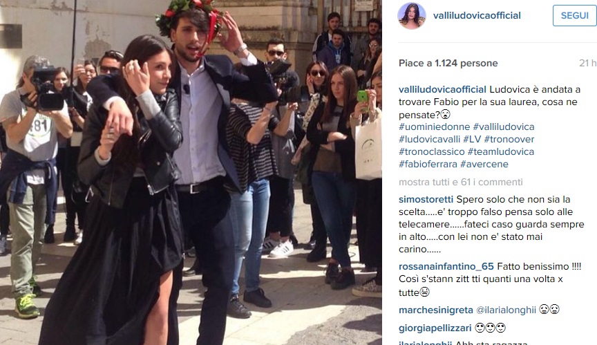 ROMA – Ludovica Valli sceglie Fabio Ferrari? Ecco il gesto folle che scatena i rumors! Sapremo tutto durante la prossima puntata di Uomini e Donne ma la notizia ha già fatto il giro del web: Fabio Ferrara, corteggiatore di Ludovica Valli a Uomini e Donne, si è laureato nelle scorse ore ma è stato il gesto a dir poco “folle” e romantico di Ludovica Valli che ha entusiasmato i fan del programma: la tronista, infatti, è corsa a Napoli per festeggiare Fabio Ferrara.
