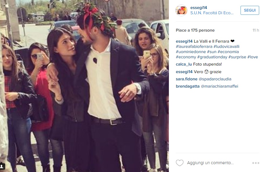 Fabio Ferrara si è laureato a Napoli e Ludovica Valli non ci ha pensato due volte a correre a festeggiare il corteggiatore che, con molta probabilità, sarà la sua scelta. I due si sono lasciati fotografare dalla folla di fan accorsi per vederli insieme. Fabio Ferrara, diventato noto in seguito al suo percorso a “Uomini e Donne”, è riuscito a completare il suo percorso di studi in Economia aziendale e si è laureato proprio nei giorni scorsi. Per il corteggiatore è stata una data molto importante, una giornata che ha ovviamente voluto festeggiare insieme agli amici e ai parenti più stretti e a tutti coloro che gli sono stati vicini nei momenti più duri. Ebbene, a sorpresa è spuntato un altro volto noto tra gli amici che hanno voluto esserci in questo momento così speciale: quello di Ludovica Valli, la tronista che Fabio corteggia. La ragazza è volata a Napoli per fare a Fabio i suoi auguri. I due, inoltre, non ci hanno proprio pensato a rimanere “isolati” ma si sono abbracciati di fronte all’ingresso della seconda Università degli studi di Napoli, di fronte a tutti gli amici di Fabio e non solo! Così, le foto di Fabio e Ludovica che festeggiano in poco tempo hanno fatto il giro del web e faranno parte dell’esterna che sarà mandata in onda nel corso della prossima puntata dello show condotto da Maria De Filippi.