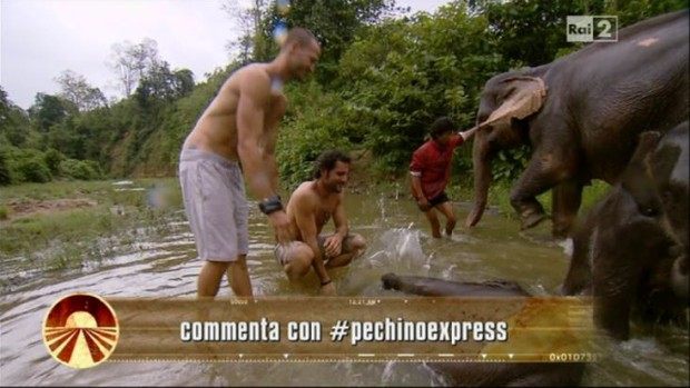 Il mattino dopo Sposini e Fratelli si sfidano in un “grande classico” di Pechino Express: la prova degli elefanti, che consiste nel portare cesti di frutta passando in un percorso ai cui lati si trovano due file di, appunto, elefanti. La tecnica più accreditata per superare la prova risulta essere l’insulto ai mammiferi.