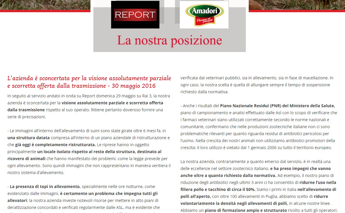 Ma la replica di Amadori non è tardata ad arrivare. Tramite un comunicato stampa, l’azienda ha replicato al servizio di Report dicendosi