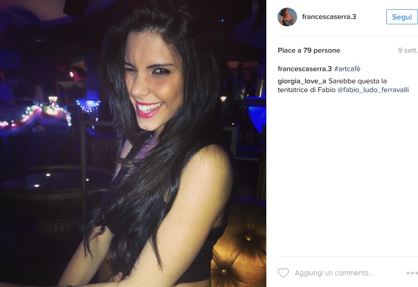 Ma chi è Francesca Serra, questa bella ragazza che sembra aver già messo lo zampino nella storia tra Ludovica e Fabio? Francesca ha 23 anni ed è di Roma. Diplomata al liceo linguistico della sua città, insegna fitness in una palestra. Lo scorso anno ha vinto la fascia di Miss Lazio Rocchetta 2015.