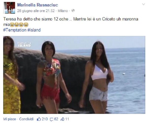 E così Marinella Rusnaciuc, una delle tentatrici di quest’edizione ha commentato le parole di Teresa Cilia con un post pubblicato su Facebook:
