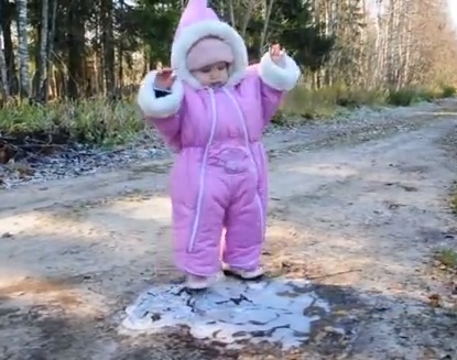 MOSCA (RUSSIA) – Polna, una bambina russa, vede il ghiaccio per la prima volta. Dopo aver quasi rischiato di cadere una prima volta, si piega per toccare la lastra di ghiaccio, cade e non riesce più a rialzarsi.