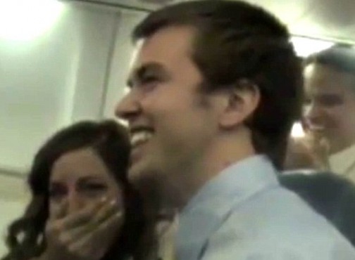 Incuriosito dall’idea, Derek aveva contattato la compagnia aerea prima del volo ottenendo dall’equipaggio della Delta, un entusiastico sì. Justin, il fratello 16enne di Derek si è offerto di prendere la parola per annunciare la proposta dal microfono dell’aereo utilizzato per comunicare le informazioni di sicurezza ai passeggeri.