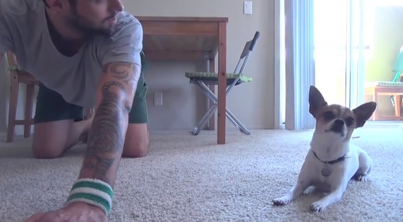 video Il chihuahua fa yoga con il padrone (Video)Matthew Di Loreto-6 Agosto 2013ROMA – Questo piccolo chihuahua ha un rapporto particolare con il suo padrone. La sintonia tra il cane e e il suo padrone è tale che riescono a ripetere i movimenti di yoga con un sincronismo perfetto. YouTube