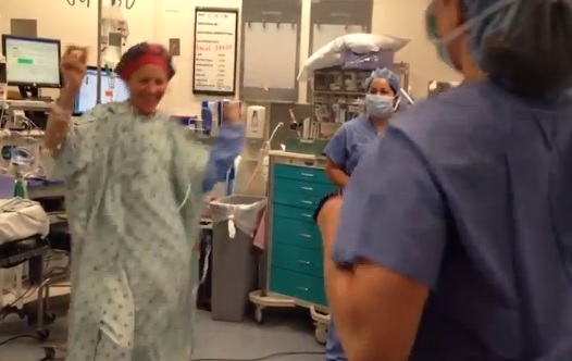 Flash mob della madre in sala operatoria prima di doppia mastectomia (Video)