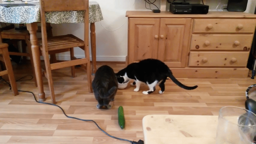 Sempre su Reddit, oltre al tentativo di trovare una spiegazione scientifica al “fenomeno”, è nata la sotto pagina CucumbersScaringCats in cui si possono trovare diversi filmati che mostrano gatti che scappano via terrorizzati dal cetriolo.
