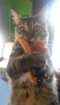 ROMA – Un gatto affamato con in bocca un pezzo di pizza che aveva appena rubato è un video che è stato visto più di 200,000 volte. Il gatto viene ripreso mentre tiene la refurtiva in bocca e dal modo in cui soffia si capisce che non intende affatto lasciar andare il suo bottino.