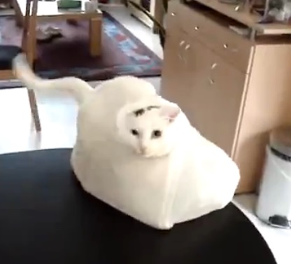 Gatto curioso rimane intrappolato nella busta di plastica (Video)