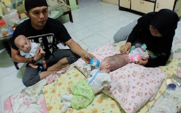 le piccoline sono nate quattro mesi fa ed hanno anche un’altra gemella, che però è nata separata. I genitori hanno tutti e due 30 anni e vivono a Jakarta in Indonesia. Ora sperano che l’operazione possa consentire alle figlie di vivere una vita normale: “I dottori erano scioccati alla nascita quando hanno realizzato che si trattava di tre gemelle e due erano siamesi”, ha raccontato il padre che ha raccontato di attendere con ansia la separazione perché “è davvero difficile vedere così” le loro figlie, sia per lui che per la moglie.