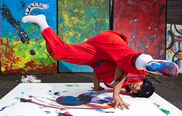 WOLVERHAMPTON (REGNO UNITO) – Hanifa McQueen-Hudson produce arte ballando la breakdance. Hanifa, 43 anni, vive a Wolverhampton in Gran Bretagna: la donna ha cominciato a produrre quadri dopo essersi sfregata accidentalmente sul pavimento mentre ballava.