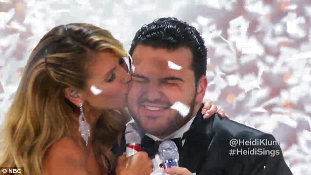 La modella che fino ad ora aveva solo giudicato gli altri, si è messa alla prova insieme a questo giovane cantante di jazz che ha concluso l’undicesima stagione di “America’ s Got Talent” conclusasi lo scorso 14 settembre. Heidi è stata in grado di far sciogliere un giudice notoriamente difficile come Simon Cowell che si è alzato in piedi per una standing ovation. “Io amo cantare, ma non sono una cantante come Sal – ha detto la Klum. – Spero che gli altri giudici non finiscano per bocciare la mia performance” ha scherzato Heidi a fine spettacolo.