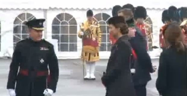 LONDRA – Kate Middleton raggiante e in gran forma per la parata di San Patrizio. La Duchessa di Cambridge, nonostante si stia avvicinando il giorno del parto che dovrebbe essere ad aprile, ha partecipato alle celebrazioni a Aldershot accanto al marito William in alta uniforme. Questa volta la bella Kate ha scelto un look un po’ castigato e sotto tono, soprattuto rispetto a quello sfoggiato gli anni scorsi per la stessa occasione: un cappottino marrone di Catherine Walker con una spilla a forma di trifoglio, simbolo di San Patrizio, che le lascia scoperte solo le gambe e maschera abbastanza il pancione. In tinta cappello, scarpe e guanti.