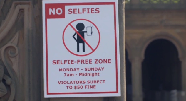 Jena ferma svariate persone, che restano sorprese ma alla fine rinunciano con rammarico all’idea di auto-immortalarsi. La falsa poliziotta spiega loro che possono evitare la multa solo se cancellano davanti a lei il selfie appena scattato. Nessuno capisce che si tratta di uno scherzo sebbene l’attrice sia facilmente smascherabile vista l’assurdità del divieto. “I soldi andranno alle ragazze senza autostima, perché non sono fotogeniche”, spiega l’attrice alle persone che sta per multare.