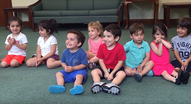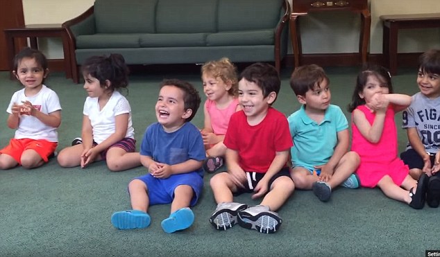 A stimolare la risata collettiva è il bimbo vestito di blu, quello che si vede in primo piano. L’insegnate Sara Shonfeld racconta che il bimbo ride grazie all’effetto che fa su di lui la canzone scelta. “Batti le mani e poi fermati” è il gioco messo in scena dall’insegnate che in questo modo vuole spiegare ai piccoli una forma di apprendimento basata sull’espressività musicale.